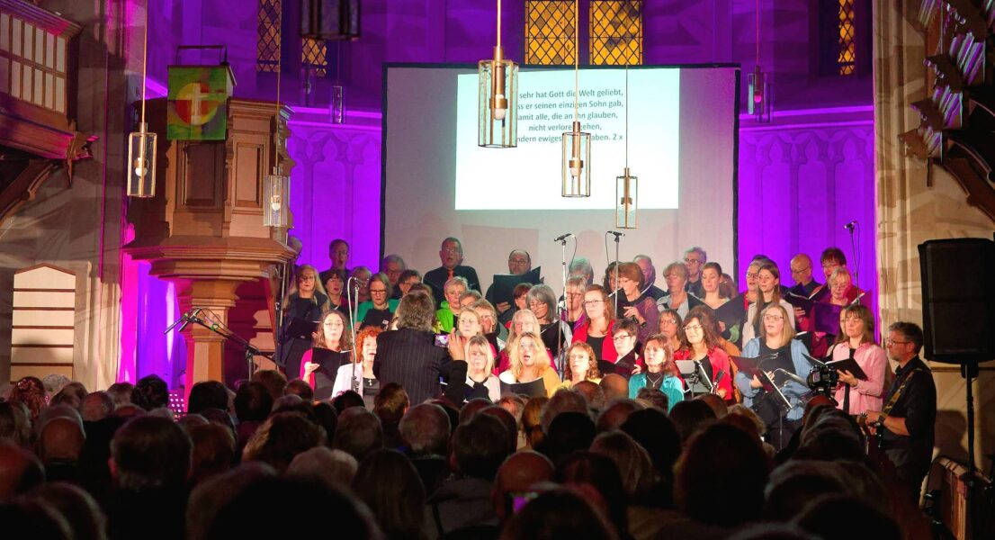 Pressebericht: Premiere 3-fach-Event „Aus Liebe geboten“ Chorkonzert, Vernissage und CD-Release in der Jesus-Christus-Kirche Dillheim Die Zehn Gebote sind – zum Glück – kein „Schnee von gestern“. Verschiedene Zitate stimmten das Publikum am Sonntagabend, den 26. Oktober, ein in das außergewöhnliche Chorkonzert „Aus Liebe geboten“ (Lieder und Bilder zu den 10 Geboten mit ihren segensreichen Auswirkungen)
