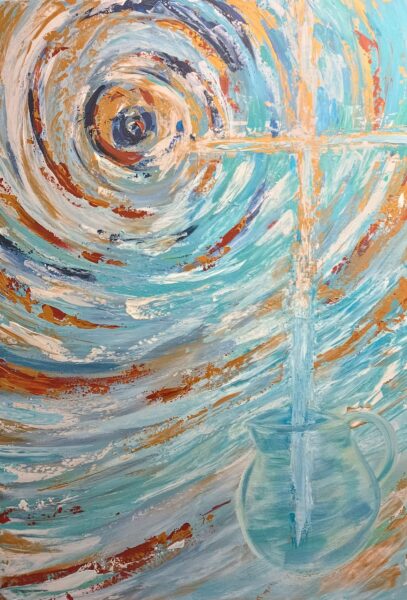Das Bild von Kathrin Rokitta (Acryl auf Leinwand, 100 x 70 cm) stammt aus der 10-Gebote-Gemälde-Kollektion und ist auf der Grundlage des Liedes „Alles und noch mehr“ aus dem Album „Aus Liebe geboten“ entstanden. Infos auf der Projektseite.